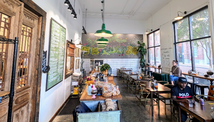 Inside ARRIVE Hotel, this café mixes quality coffee with warm, fresh pastries. Hustle & Dough is stylish but approachable — great for grabbing a flat white and a croissant before heading into South Main or staying put with a laptop.